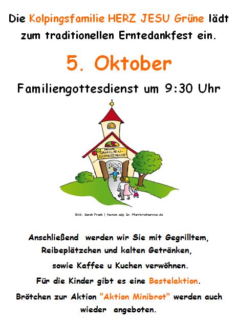 Die Kolpingsfamilie HERZ JESU Grüne lädt zum traditionellen Erntedankfest ein.